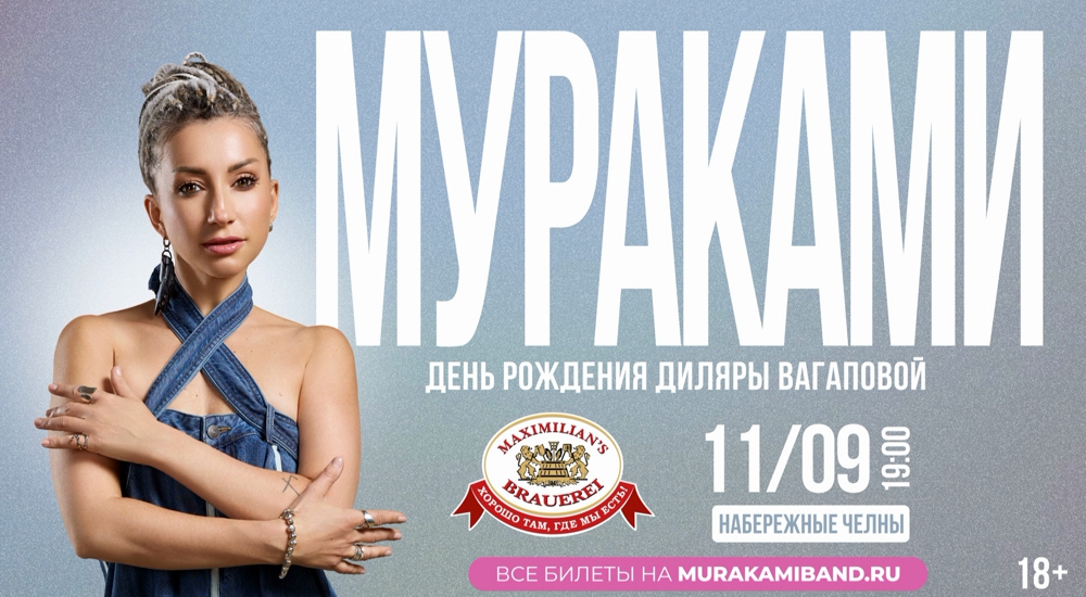 11 сентября 2025 года в клубном ресторане «Maximilian`s» города Набережные Челны состоится концерт группы Мураками. Не пропустите!